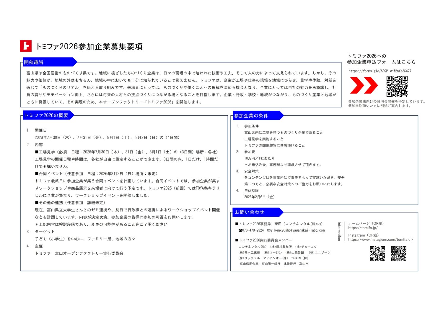 参加をご検討の際は、一番下の「トミファ2026参加企業募集要項」をご確認ください。